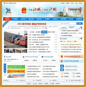 瀘州市人民政府門戶網(wǎng)站堅(jiān)持以人為本,以公眾為中心,把為公眾服務(wù)、為企業(yè)服務(wù)作為出發(fā)點(diǎn)和歸宿,堅(jiān)持“政務(wù)信息公開(kāi)、網(wǎng)上辦事和互動(dòng)交流”三大功能定位,著力打造服務(wù)型政府網(wǎng)絡(luò)平臺(tái)。瀘州市人民政府門戶網(wǎng)站已經(jīng)開(kāi)通中文簡(jiǎn)體版、中文繁體版、英文版、手機(jī)版。