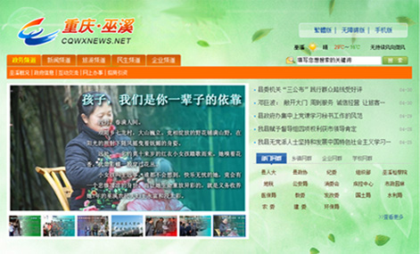 重慶巫溪縣人民政府門戶網(wǎng)站(www.cqwxnews.net)是由中共巫溪縣委、巫溪縣人民政府主辦,中共巫溪縣委宣傳部主管,全縣各鄉(xiāng)鎮(zhèn)(街道)和部門承辦,巫溪縣互聯(lián)網(wǎng)信息中心負責(zé)技術(shù)支持的網(wǎng)絡(luò)集群。建立以政務(wù)頻道、新聞頻道、旅游頻道、民生頻道、企業(yè)頻道為主要內(nèi)容的主網(wǎng)站,以各鄉(xiāng)鎮(zhèn)(街道)、部門和重點企事業(yè)單位網(wǎng)站為二級子網(wǎng)站,以各鄉(xiāng)鎮(zhèn)(街道)、部門所屬單位和村、社區(qū)為三級子站的門戶網(wǎng)站集群。通過網(wǎng)絡(luò)集群的形式推進政務(wù)公開,服務(wù)廣大群眾,加強公眾交流,展示巫溪形象。重慶巫溪門戶網(wǎng)是重慶市網(wǎng)絡(luò)媒體協(xié)會首批會員單位,也是全市首批獲準具備新聞資質(zhì)的區(qū)縣網(wǎng)站。