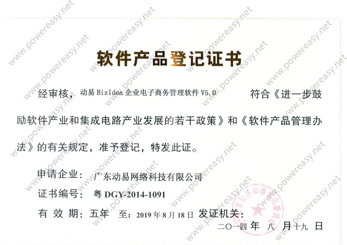 軟件產(chǎn)品登記—動易BizIdea企業(yè)電子商務管理軟件V5.0