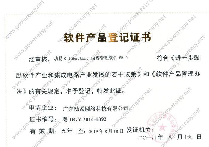 軟件產(chǎn)品登記—動易SiteFactory內(nèi)容管理軟件V5.0