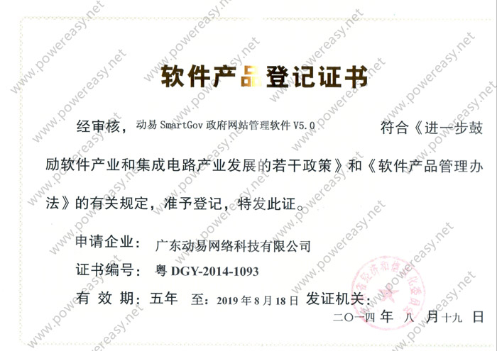 軟件產(chǎn)品登記—動易SmartGov政府網(wǎng)站管理軟件V5.0