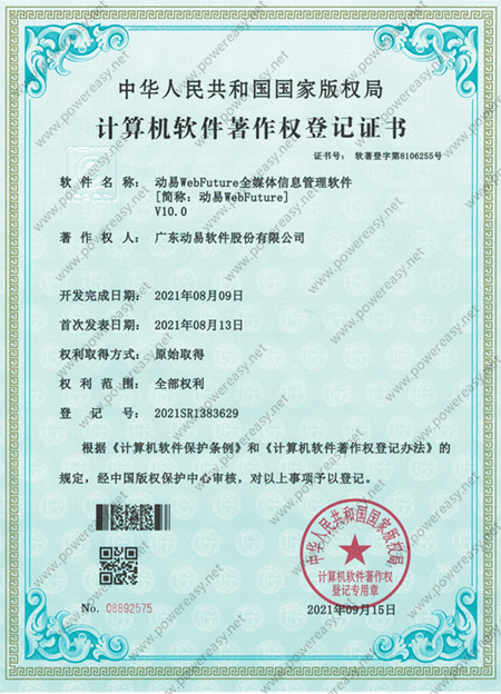 軟件著作權-動易WebFuture全媒體信息管理軟件V10.0