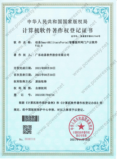 軟件著作權-動易SmartMilitaryPortal智慧強軍網(wǎng)門戶云軟件V10.0