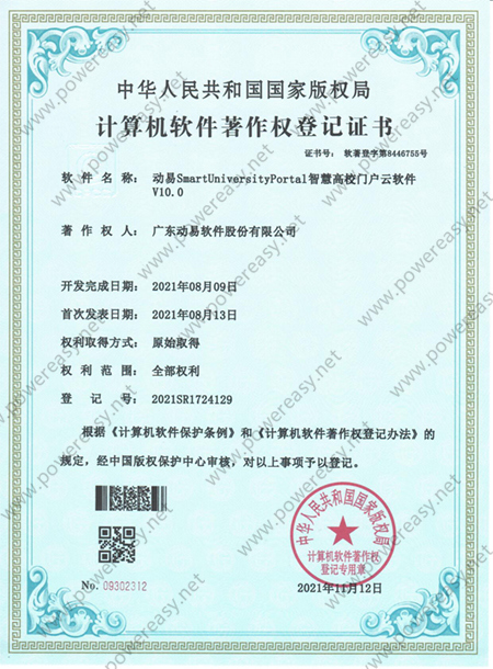 軟件著作權-動易SmartUniversityPortal智慧高校門戶云軟件 V10.0