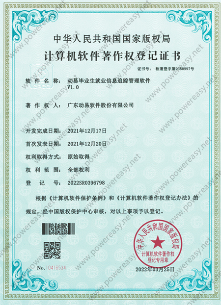 軟件著作權-動易畢業(yè)生就業(yè)信息追蹤管理軟件V1.0