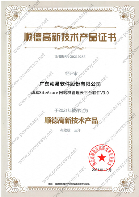 2021高新技術產(chǎn)品證書—動易SiteAzure 網(wǎng)站群管理云平臺軟件V3.0