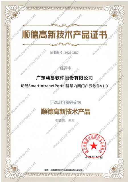 2021高新技術產(chǎn)品-動易SmartIntranetPortal 智慧內(nèi)網(wǎng)門戶云軟件V1.0