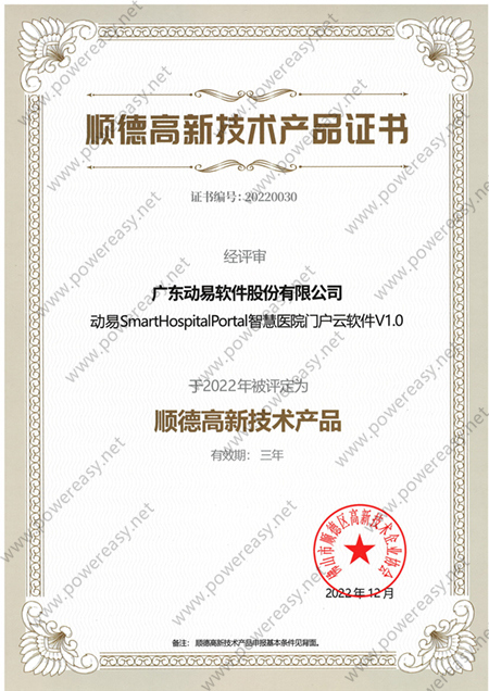 2022年高新技術產(chǎn)品-動易SmartHospitalPortal智慧醫(yī)院門戶云軟件V1.0