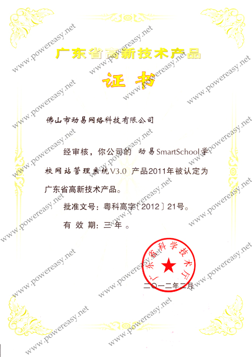 2010年廣東省高新技術(shù)產(chǎn)品 (SmartSchool)證書