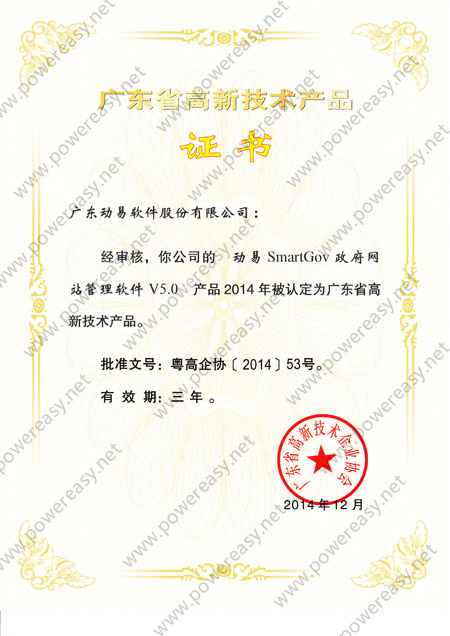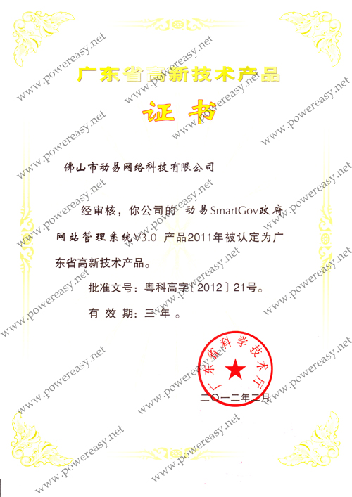 2010年廣東省高新技術(shù)產(chǎn)品 (SmartGov)證書