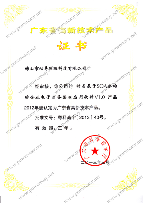 2012廣東省高新技術(shù)產(chǎn)品-動易基于SOA架構(gòu)的企業(yè)電子商務(wù)集成應(yīng)用軟件V1.0