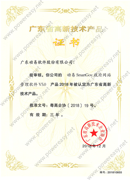 2019年高新技術(shù)產(chǎn)品—動易SmartGov政府網(wǎng)站管理軟件V6.0