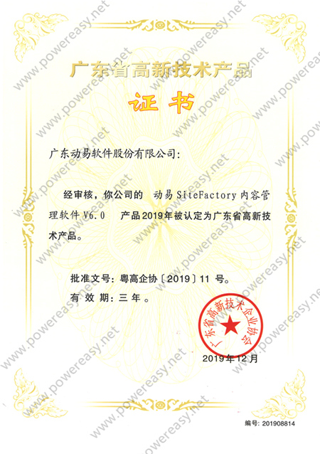 2019年高新技術(shù)產(chǎn)品-動易SiteFactory內(nèi)容管理軟件V6.0