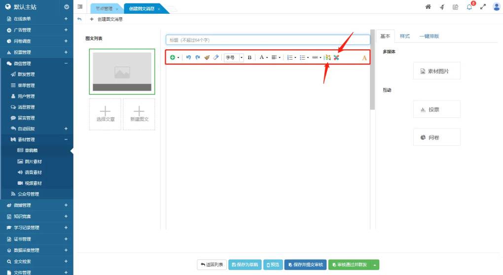 專為微信發(fā)布內(nèi)容編輯設(shè)計,增加了調(diào)用第三方編輯工具的功能按鈕。