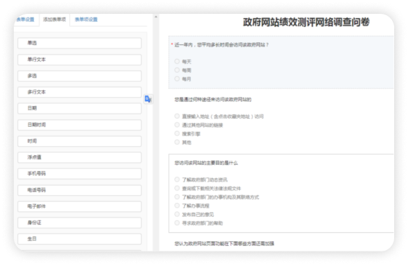 表單項(xiàng)支持單選 、多選、單行文本、多行文