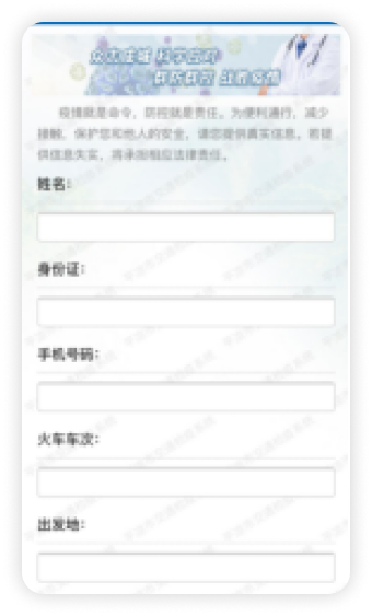 義表單應(yīng)用。例如在火車站檢查點(diǎn)面向乘客的自助檢疫