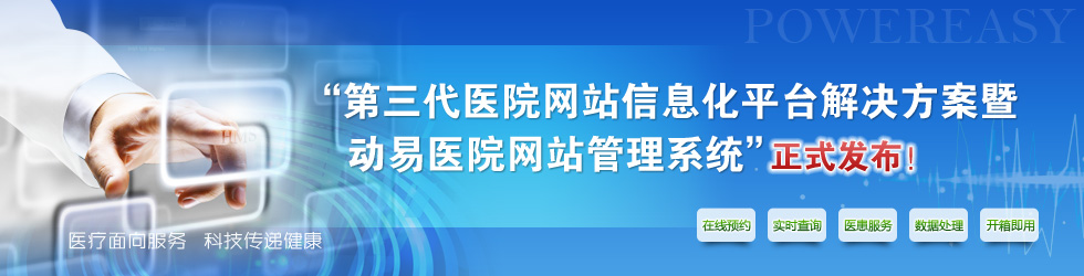 今天,動易公司正式發(fā)布以“醫(yī)療面向服務(wù) 科技傳遞健康”為宣傳口號的《第三代醫(yī)院網(wǎng)站信息化平臺解決方案》,并推出基于第三代醫(yī)院網(wǎng)站信息化平臺下的“動易醫(yī)院網(wǎng)站管理系統(tǒng)”!