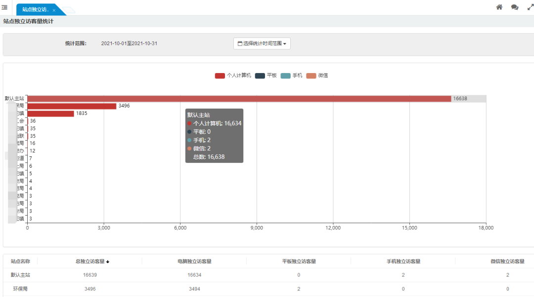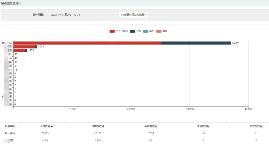 站點瀏覽量明細提供折線圖、柱形圖等數(shù)據(jù)表現(xiàn)形式,有利于了解站點的訪問情況和訪問者關(guān)注分布情況。