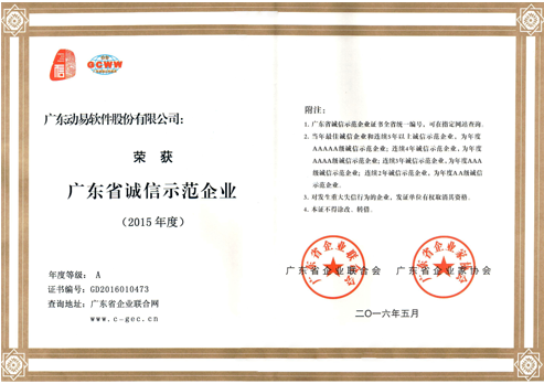動易公司連續(xù)七年獲得【廣東省守合同重信用企業(yè)】、連續(xù)三年獲得【中國企業(yè)信用等級(AAA)證書】、獲得【廣東誠信示范企業(yè)】等榮譽(yù)資質(zhì),是消費(fèi)者值得信賴的放心企業(yè)。