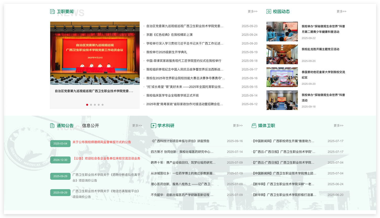 在數(shù)字化轉(zhuǎn)型不斷加快的背景下,高校網(wǎng)站群建設(shè)不僅是信息公開的窗口,更是教學、科研、管理和服務(wù)的綜合平臺。廣西衛(wèi)生職業(yè)技術(shù)學院在推進校園信息化建設(shè)過程中,全面升級門戶網(wǎng)站群,以滿足多終端適配、全媒體發(fā)布、安全防護和業(yè)務(wù)支撐等多樣化需求。