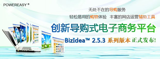 BizIdea(商務(wù)智能)是動(dòng)易公司投入數(shù)十開(kāi)發(fā)人員歷經(jīng)三年時(shí)間自主研發(fā)的新一代企業(yè)級(jí)電子商務(wù)平臺(tái),擁有著全套的專(zhuān)業(yè)電子商務(wù)支持工具,從站點(diǎn)構(gòu)建到商品陳列、從訂單協(xié)同處理到客戶(hù)關(guān)系維護(hù)、從進(jìn)銷(xiāo)存到財(cái)務(wù)管理、從促銷(xiāo)實(shí)施到輔助決策系統(tǒng)、從通訊工具到論壇博客支持等等,一應(yīng)俱全。而借助于BizIdea 全方位的導(dǎo)購(gòu)服務(wù)功能(配備完善的內(nèi)容管理系統(tǒng))、豐富的電子商務(wù)運(yùn)營(yíng)輔助功能和客服中心、問(wèn)答平臺(tái)、人才招聘等輔助性系統(tǒng),可助廣大用戶(hù)構(gòu)建起與眾不同的導(dǎo)購(gòu)式企業(yè)級(jí)電子商務(wù)平臺(tái)!