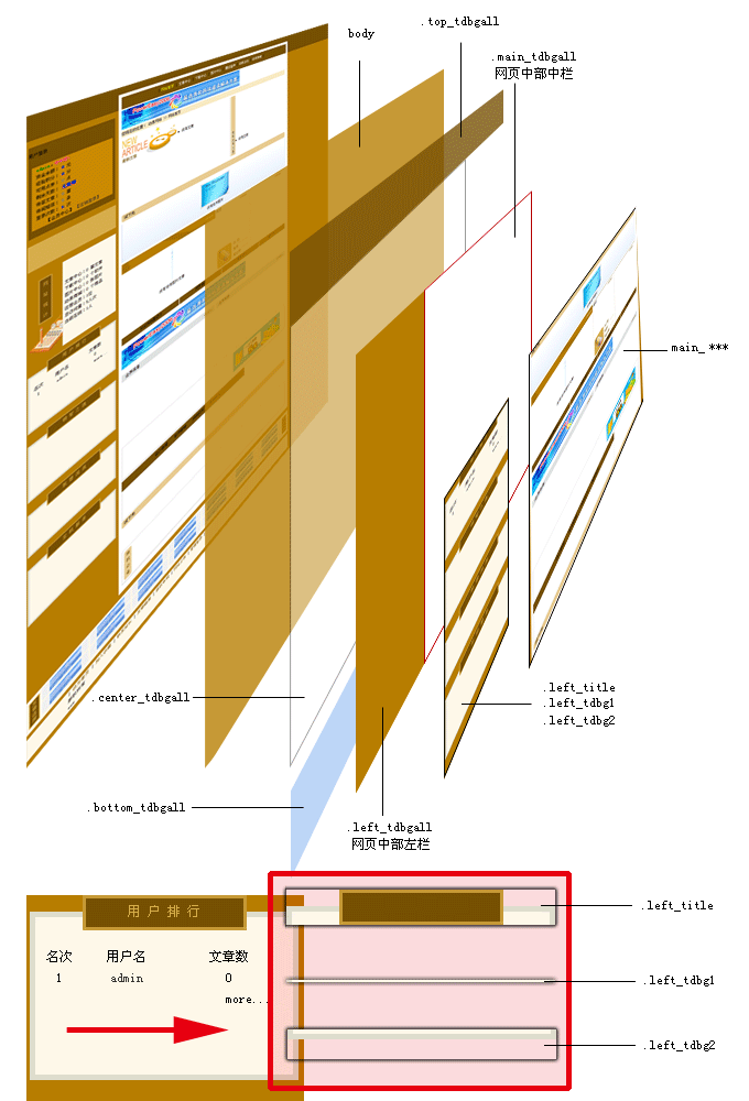 ·網(wǎng)頁頂部定義的樣式命名為:top_***; 在網(wǎng)頁中部定義中,按其位置劃分為左、中、右三個區(qū)塊: |
