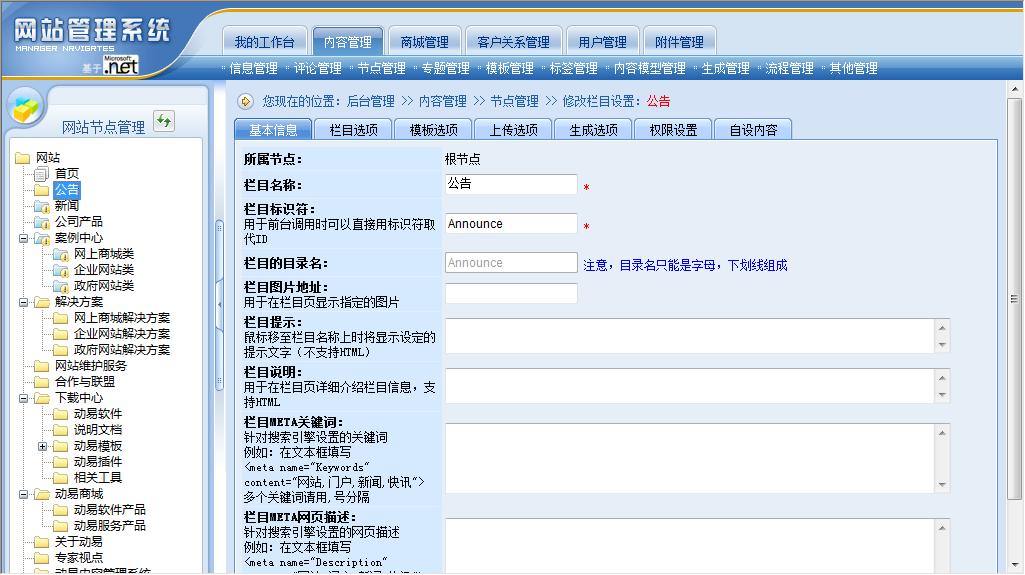 動易CMS 2007的節(jié)點管理--欄目節(jié)點