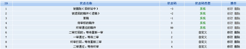 稿件狀態(tài)碼很顯然的是用于顯示稿件當(dāng)前的處理狀態(tài)的:是待審核的稿件,還是已經(jīng)通過審核的稿件?這樣便使得用戶可以清楚的了解到所投稿件正處在什么審核狀態(tài),對于網(wǎng)站編輯來說,也可以提醒自己是否有未處理的稿件,并讓稿件按既定的流程順序進入下一個審核環(huán)節(jié)。