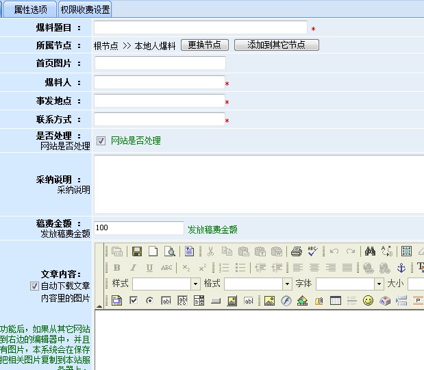 后臺(tái)管理員處理信息:爆料人、事發(fā)地點(diǎn)、聯(lián)系方式、是否處理、采納說明、稿費(fèi)金額、爆料內(nèi)容。