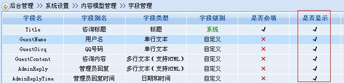 一是增加了一個(gè)“顯示/不顯示”的功能代替“啟用/禁用”功能,這樣做是為了幫助用戶對(duì)不需要顯示的系統(tǒng)字段進(jìn)行隱藏,或者對(duì)暫時(shí)不需要的字段進(jìn)行隱藏。隱藏后的字段將不會(huì)在前臺(tái)和后臺(tái)顯示出來(lái)。