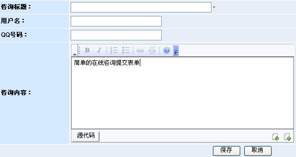 二是改良后的留言模型能夠自由增刪字段,制作成各種提交表單模型。如下圖是簡(jiǎn)單制作的“在線咨詢模型”:
