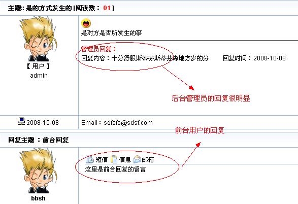在SiteFactory? 1.0 版本中,管理員對(duì)留言的回復(fù)默認(rèn)前臺(tái)是看不見的,只有自己手動(dòng)在模板中調(diào)用相關(guān)標(biāo)簽才能夠?qū)崿F(xiàn)。SiteFactory? 2.0 版本中,新版本對(duì)這個(gè)問(wèn)題進(jìn)行了修改,除了讓管理員的回復(fù)默認(rèn)能夠顯示以外,還對(duì)管理員的回復(fù)進(jìn)行了特別的提示處理,如下圖: